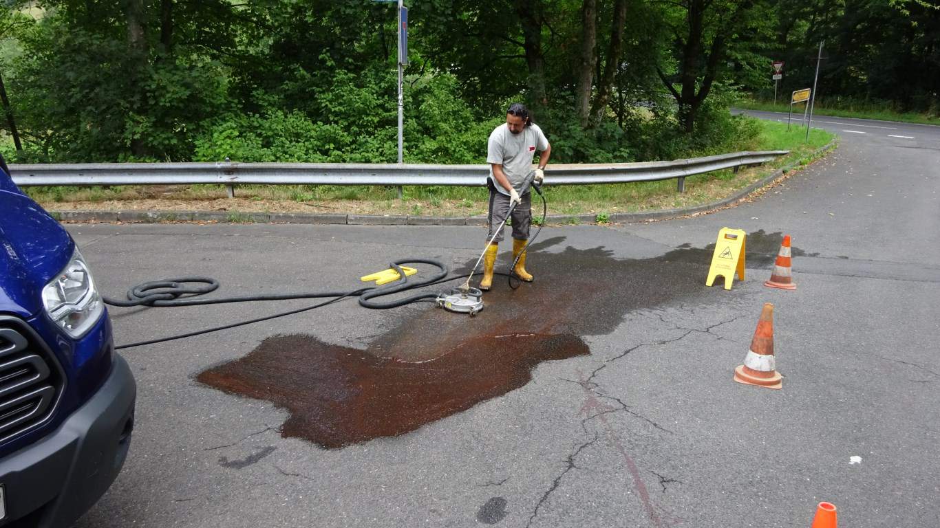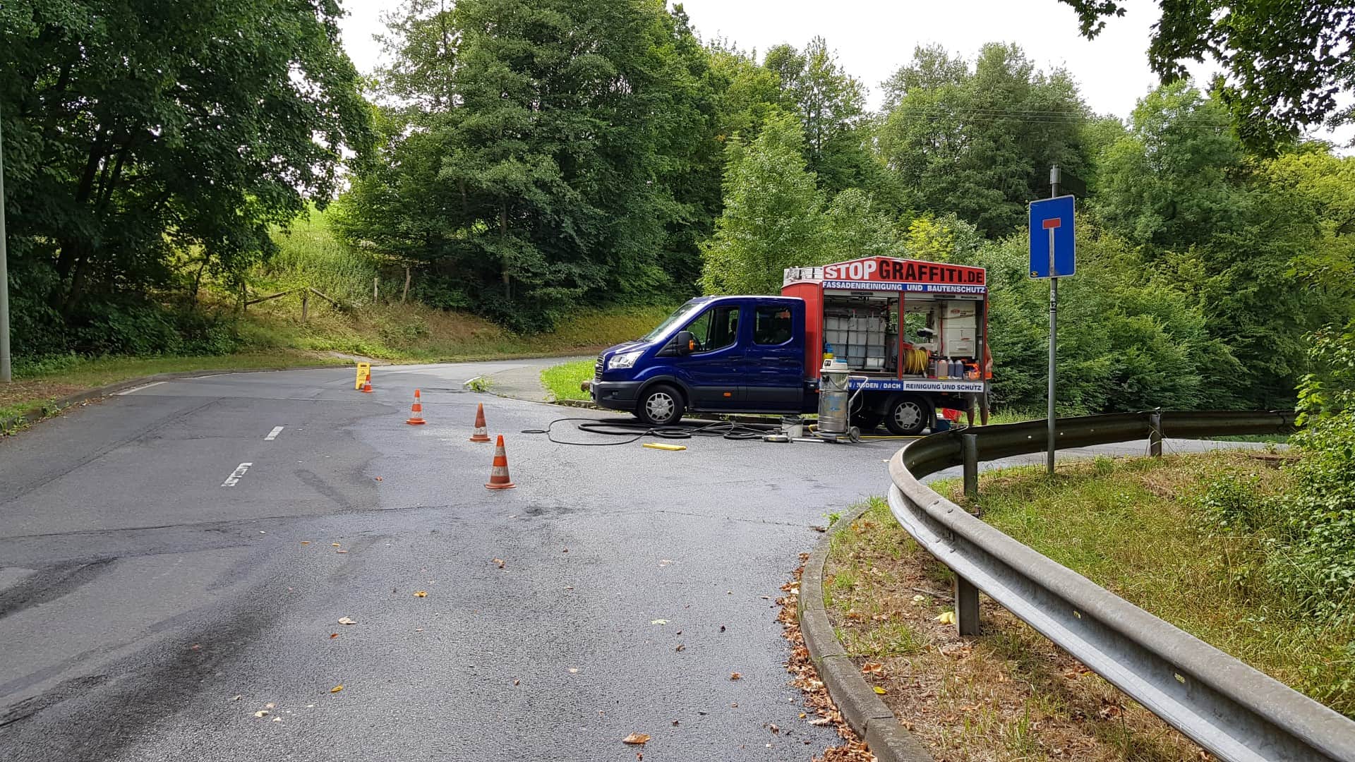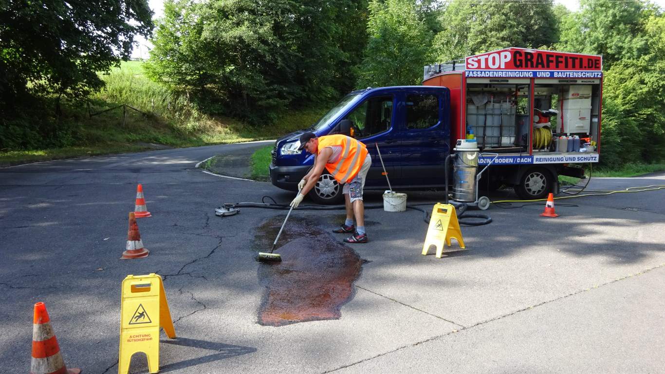 In Lohmar haben wir erfolgreich eine großflächige Fahrbahnschmiererei entfernt, die durch eine lange Spur von Ölfarbe gekennzeichnet war und dringend einer umweltfreundlichen Lösung bedurfte. Unsere innovative Technik und die Verwendung biologisch abbaubarer Graffitireiniger ermöglichten es uns, die Verschmutzung effizient zu beseitigen, während unser ökologisches Abwassersystem dafür sorgte, dass alle Rückstände aufgefangen, filtriert und aufbereitet wurden. Dabei legten wir besonderen Wert darauf, die Fahrbahn unbeschädigt zu lassen und die Sicherheit im Straßenverkehr zu gewährleisten, ohne aggressive Reinigungsmethoden anzuwenden, die ein Risiko für die Fahrbahnbenutzer darstellt.