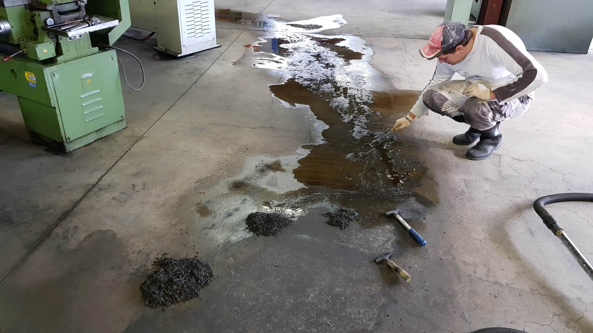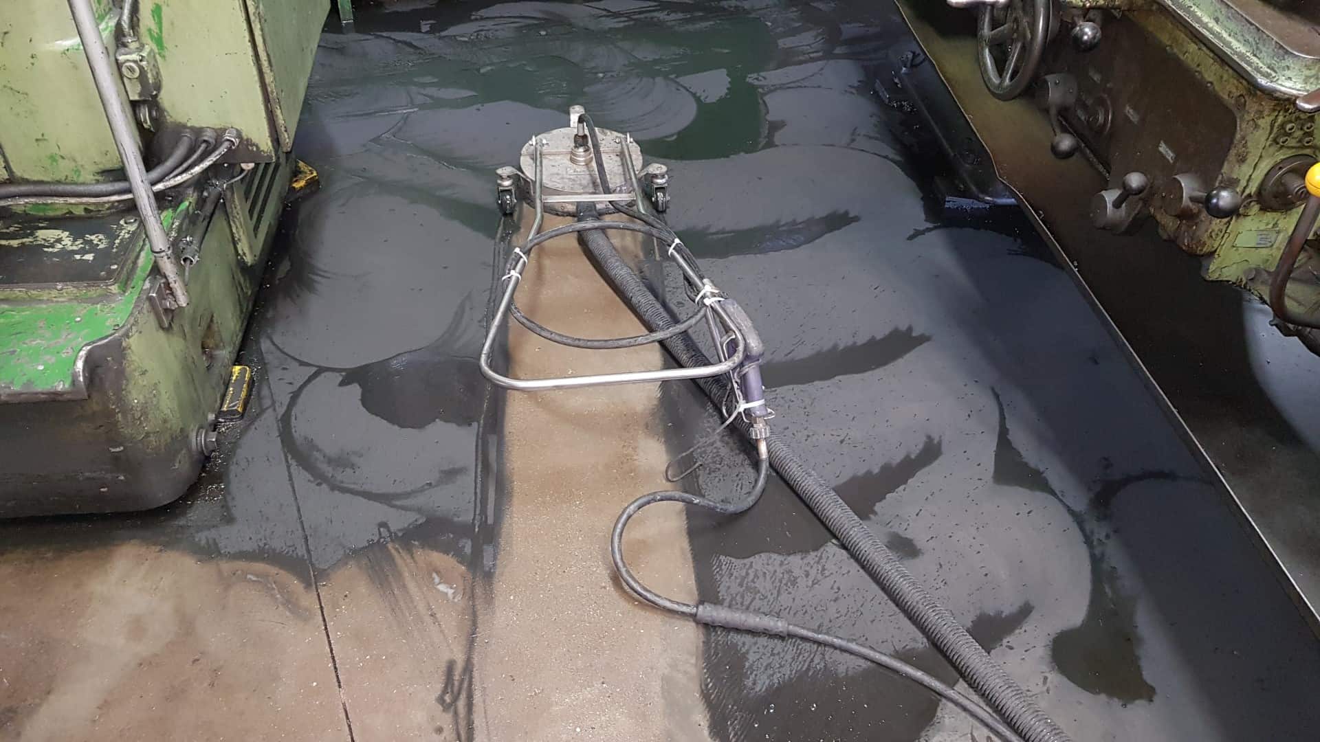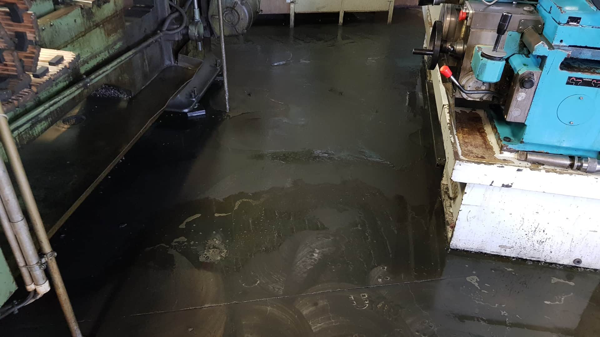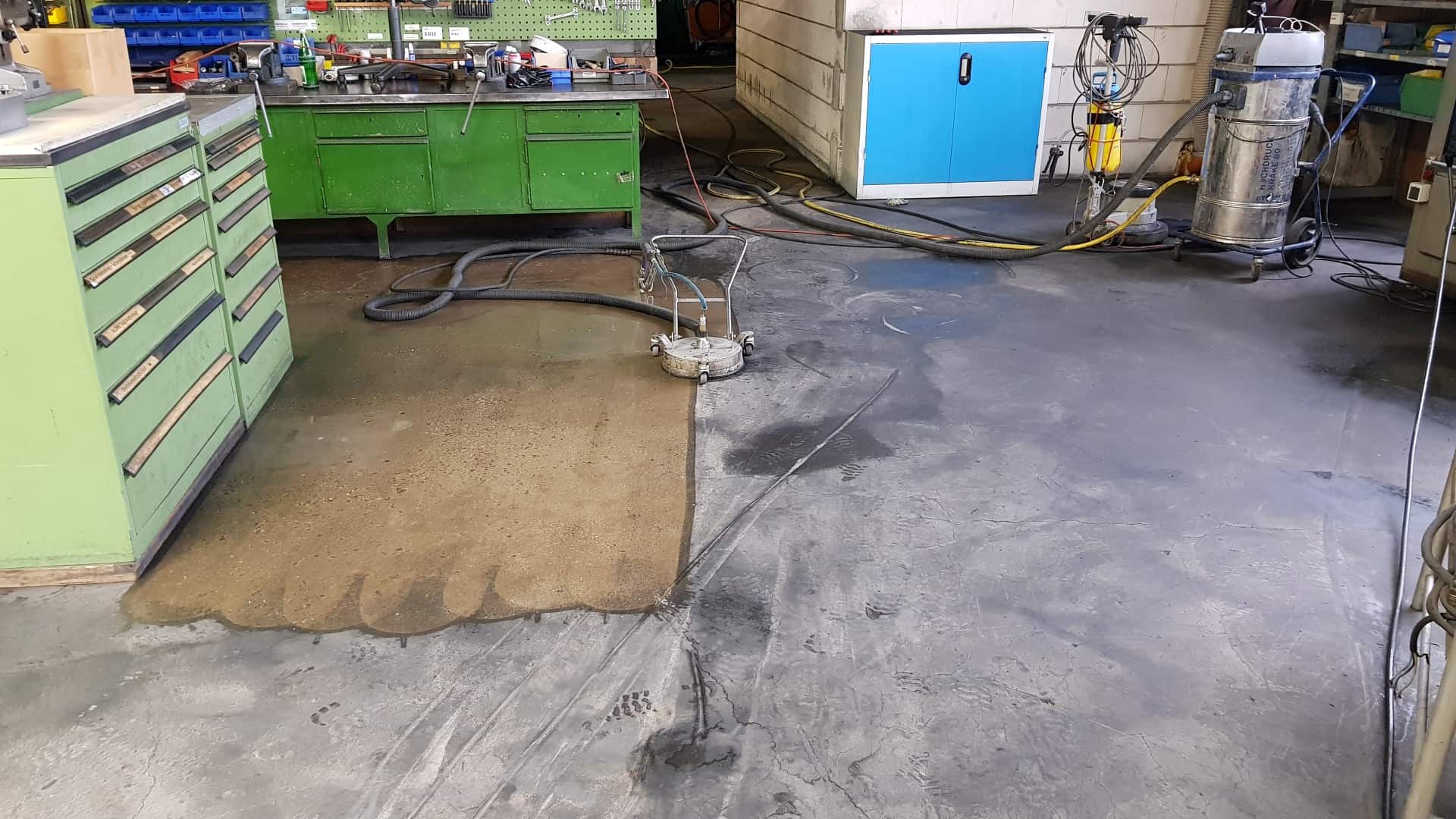 Bodenreinigung und Bodenbeschichtung einer Industriehalle in Ennepetal - Öl und Schmutz entfernen