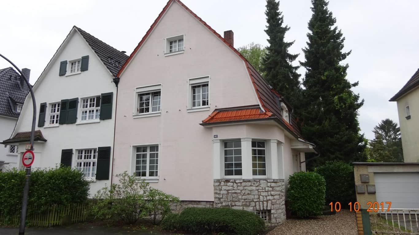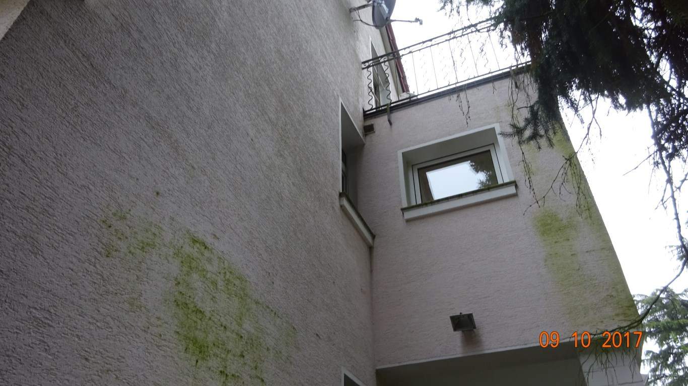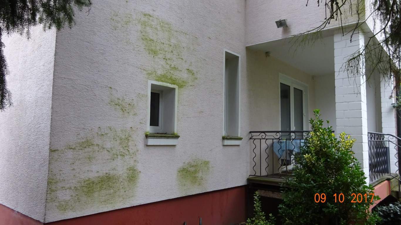 Ein Altbau um die Jahrhundertwende entstanden. Durch großen Baumbewuchs und Südseite über Jahrzehnte mit Algen und Vermoosungen besetzt. Ein Eierbewurf auf der Straßenseite trug zu dem mittlerweile sehr maroden Erscheinungsbild bei. Die Eigentümerin hatte bereits Angebote von Gerüstbaufirmen und Malerbetrieben eingeholt: Ein neues Outfit sollte her. Wir erfuhren noch rechtzeitig von dem Anliegen der Fassadenverschönerung und haben zunächst eine kostenlose Probereinigung von einer Musterfläche angeboten. Die Eigentümerin war so begeistert, das wir kurz darauf den Auftrag erhielten, die Fassade zu reinigen und mit einem biologischem Langzeitschutz zu versehen. Im Oktober 2017 war es soweit. Innerhalb von nur 2 Tagen haben wir die komplette Fassade gereinigt und mit einer biologischen Imprägnierung versehen. Das Gebäude erstrahlt nun von allen Seiten wie neu. Das Ganze hat nur einen Bruchteil des Klassikers Gerüstbau/ Malerbetrieb gekostet und vor Allem: Es ist wesentlich ökologischer und der Altbau kann weiterhin atmen. Denn wir haben nicht einfach eine weitere Schicht Farbe aufgebracht, die natürlich die Wasserdampfdiffusionsfähigkeit der Fassade stark einschränkt (Achtung: Erhöhte Gefahr der Schimmelbildung gerade bei Altbauten!) sondern die bereits vorhandene Farbe wieder aufbereitet. Im Sinne des Umweltgedanken die deutlich bessere Lösung. Wenn auch Sie eine verschmutzte Fassade haben, fordern Sie uns an. Gerne überzeugen wir Sie davon, das Sie viel Geld sparen können, Ihrer Fassade durch Reinigung statt durch einer weitere Farbschicht auch einen Gefallen erwiesen und Ihr Gebäude in neuem Glanz erstrahlen lassen. Umweltfreundlich – Preiswert – Kompetent.