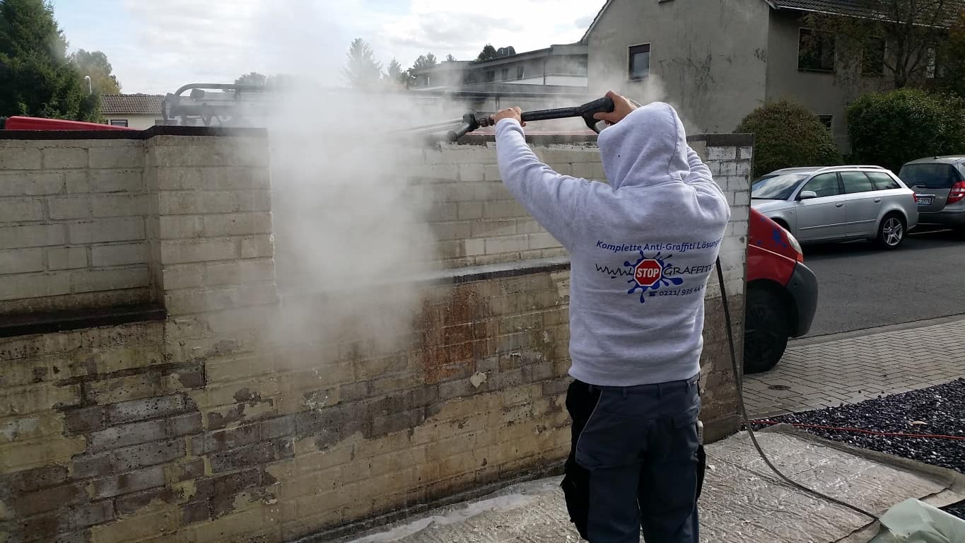 Alte Farbreste und Graffiti mit biologisch abbaubaren Reinigern entfernen. Permanenter Graffitischutz mit 2K Antigraffitibeschichtung.
