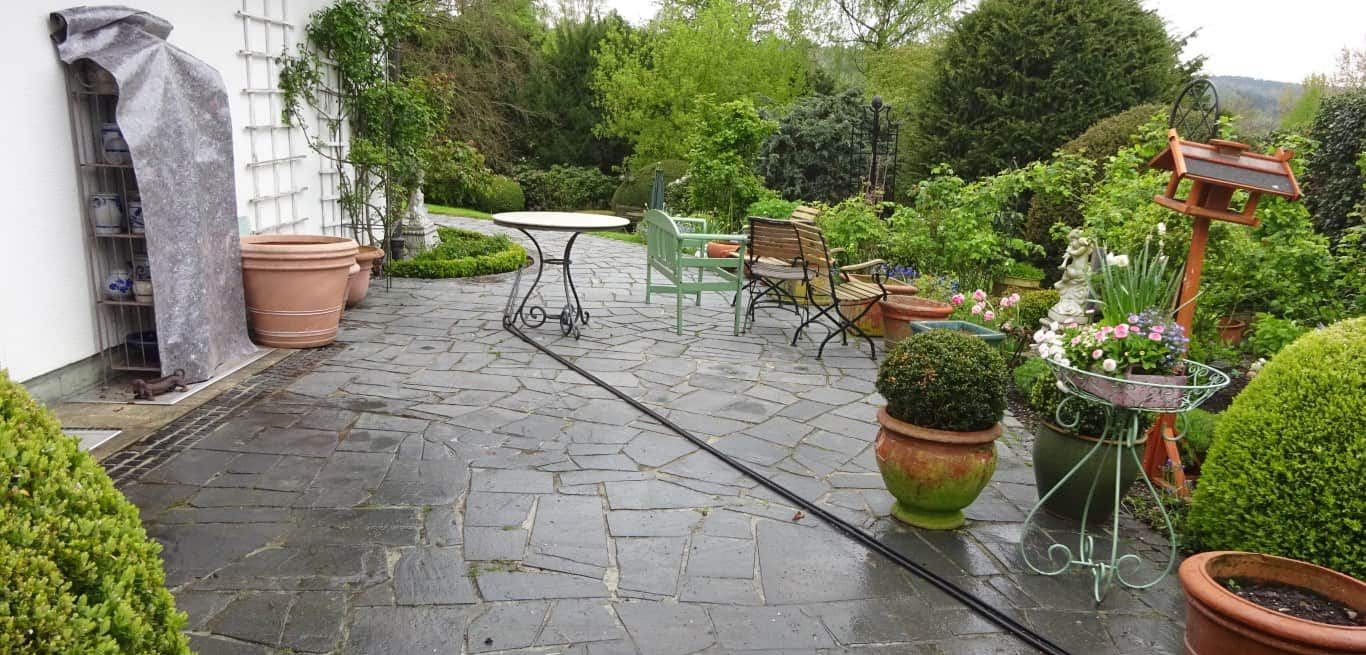 Hier war es das vorrangige Anliegen des Auftraggebers, dass die Pflanzen in dem liebevoll gestalteten Garten höchstmöglichen Schutz genießen und keinesfalls bei der Reinigung mit aggressiver Chemie gearbeitet werden durfte.