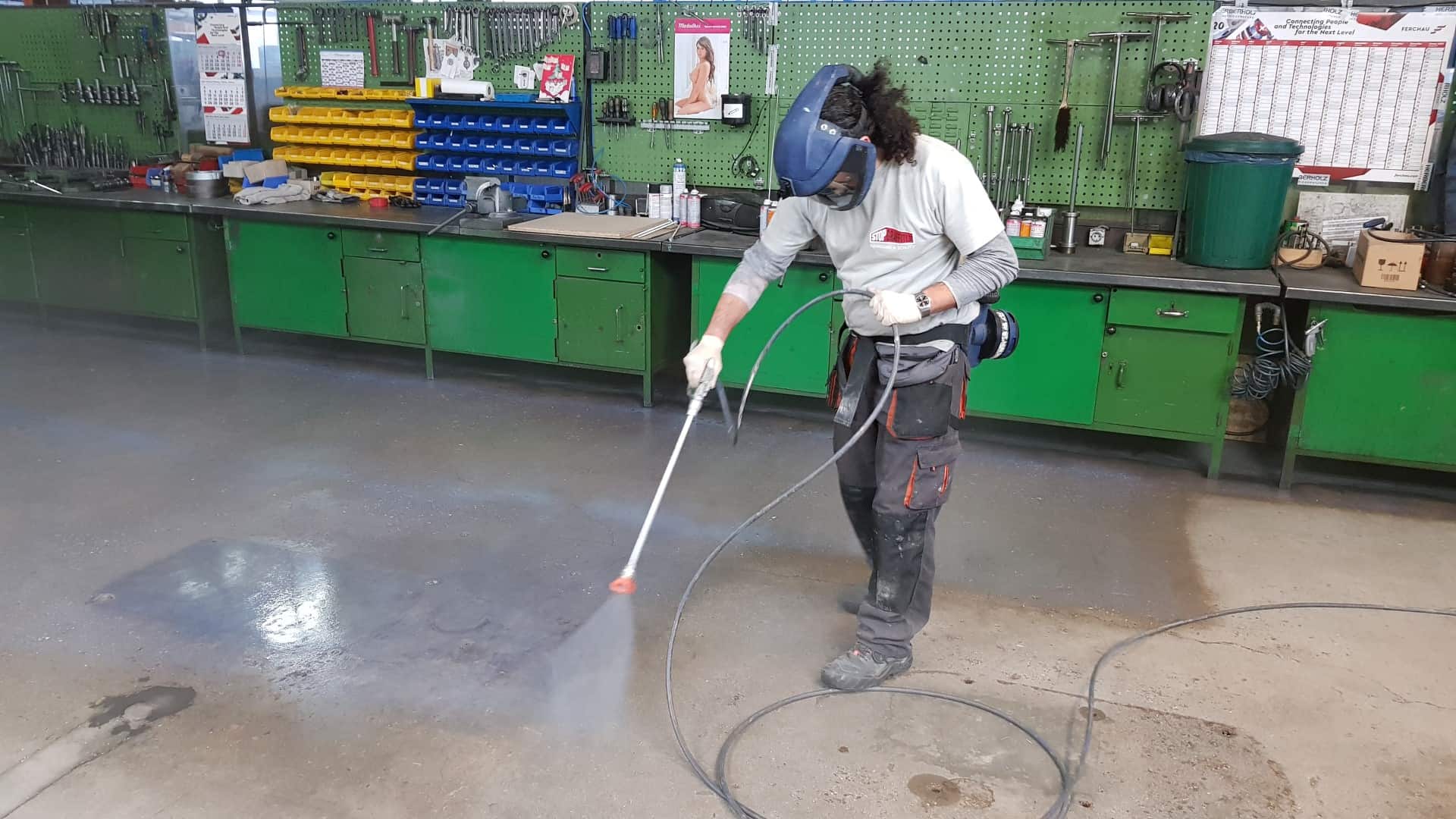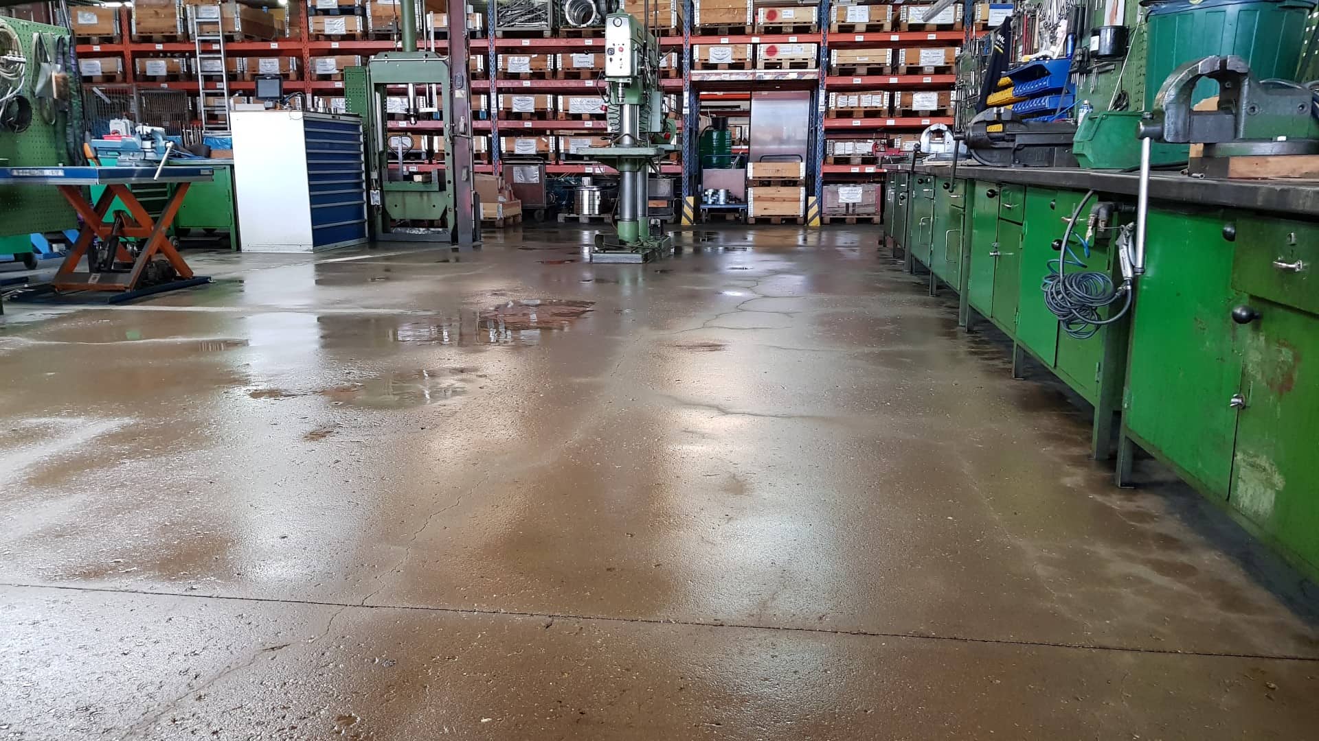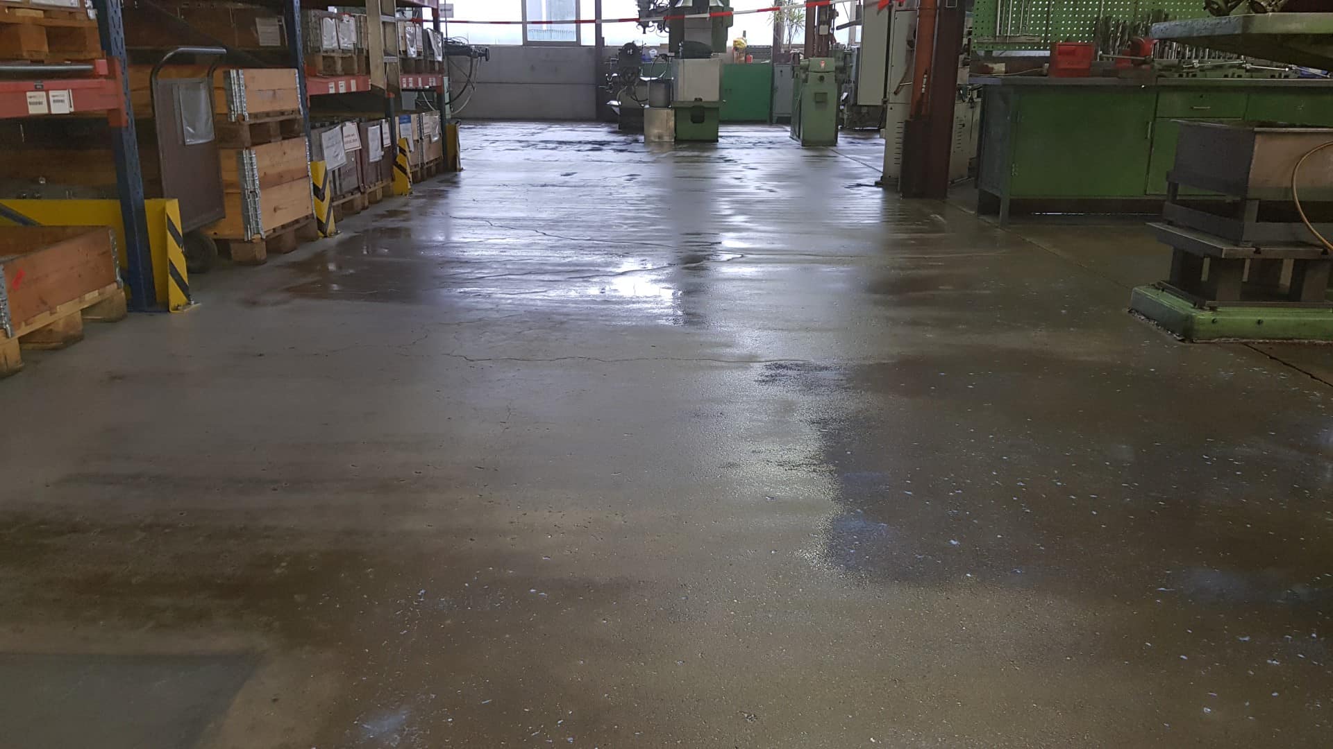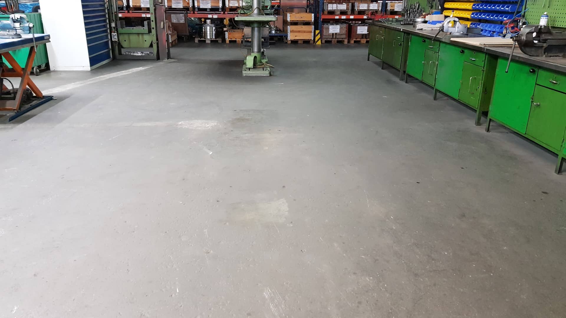 Eine 600 qm große Industriehalle, die überwiegend zur Metallverarbeitung genutzt wurde, sollte wieder frischen Glanz erhalten und vor allem sollte der Hallenboden wieder rutschfest werden und damit die Sicherheit der Mitarbeiter erhöhen.