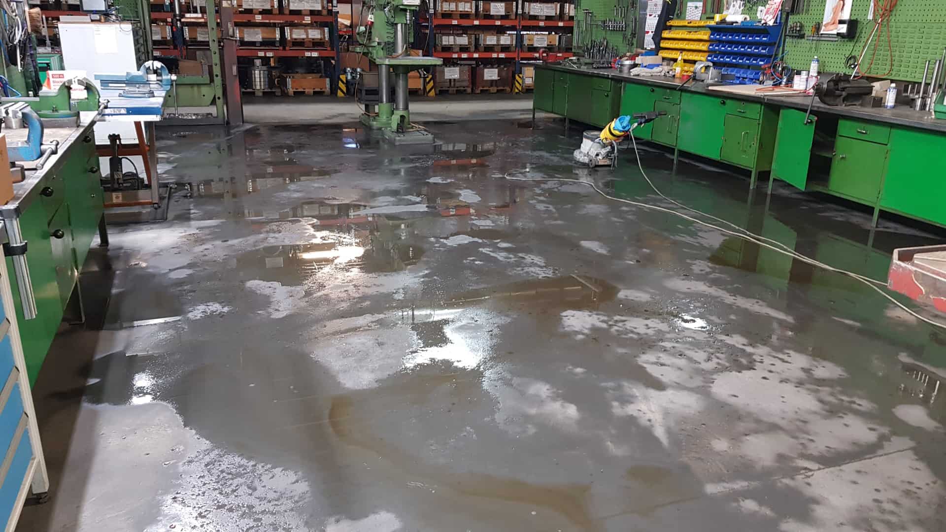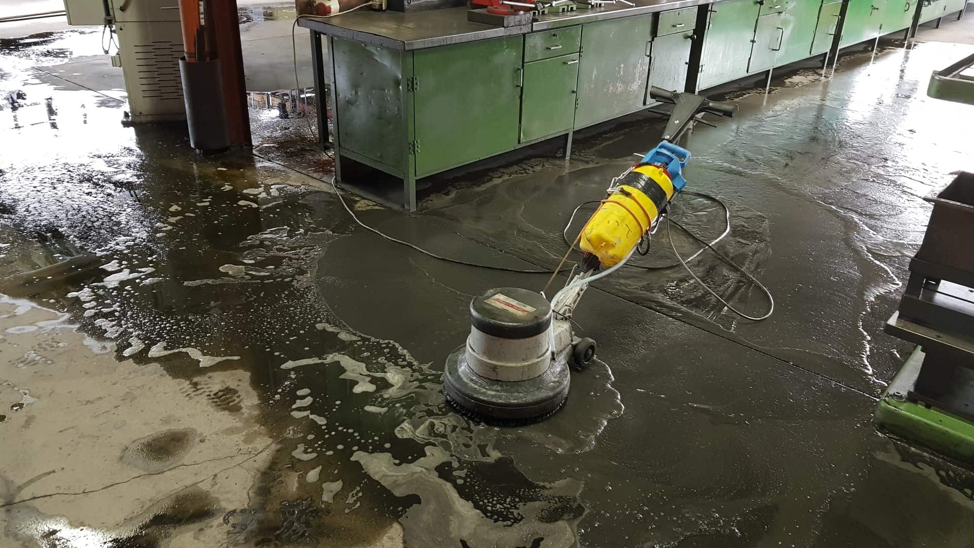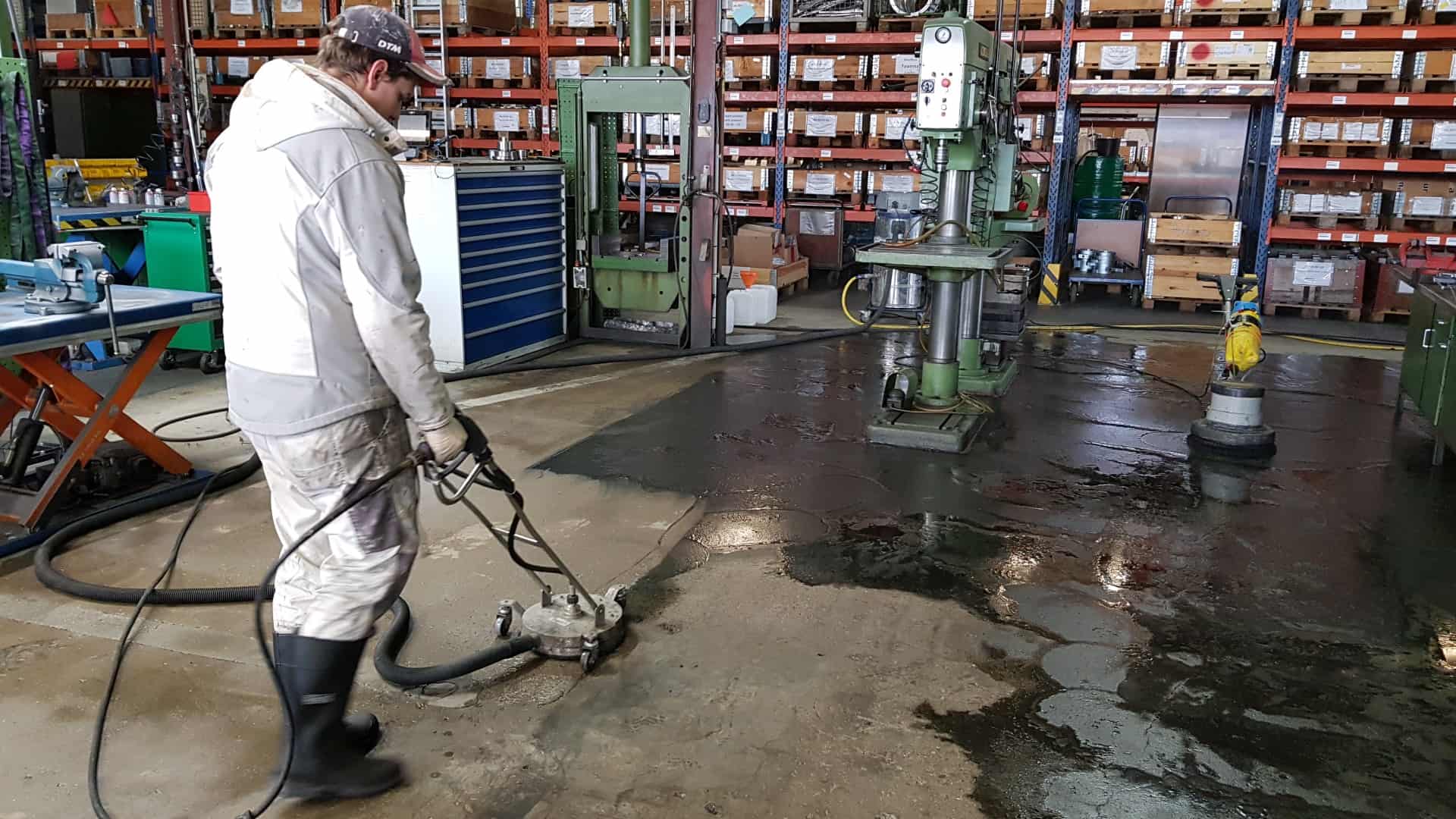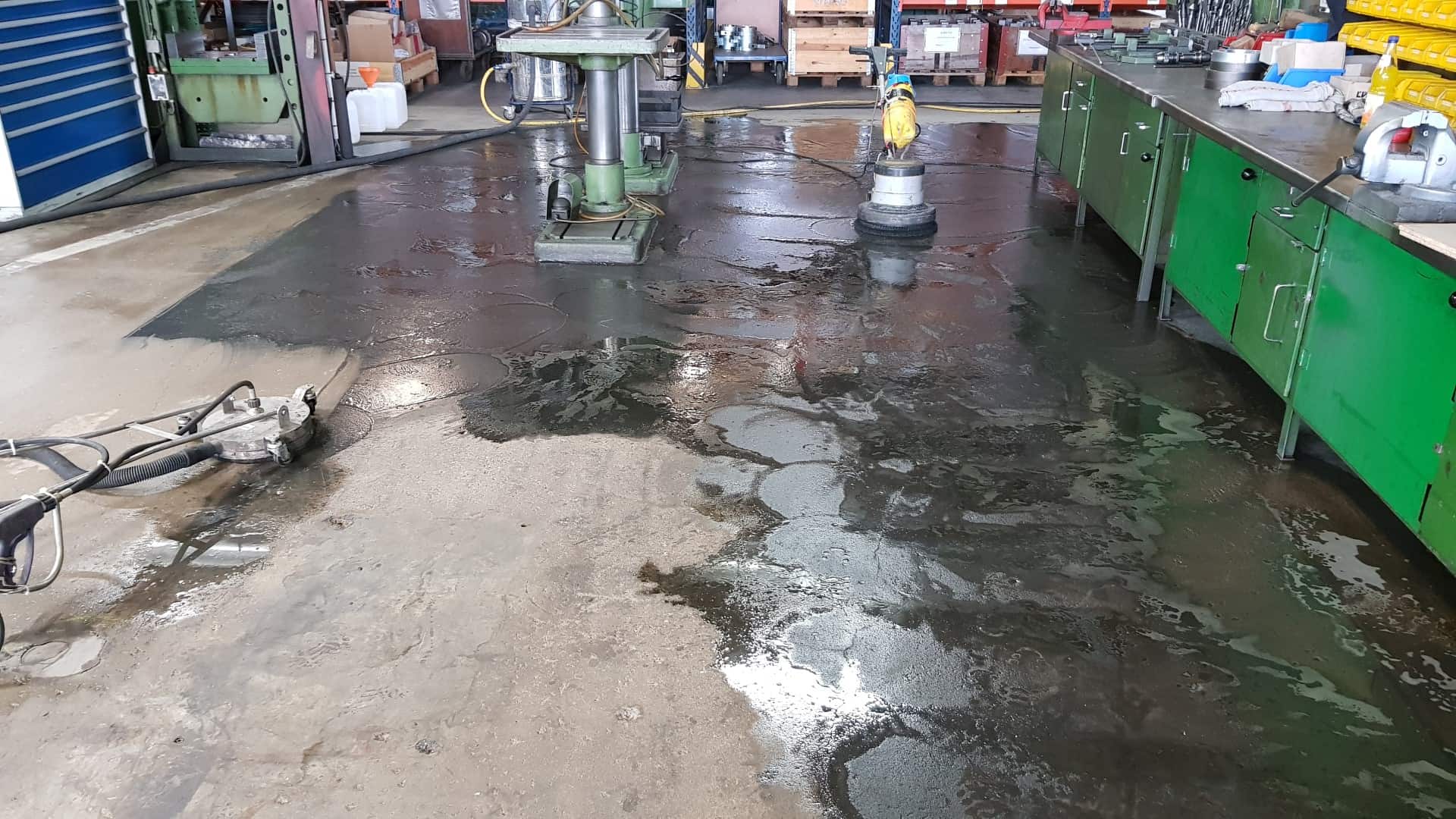 Bodenreinigung und Bodenbeschichtung einer Industriehalle in Ennepetal - Öl und Schmutz entfernen