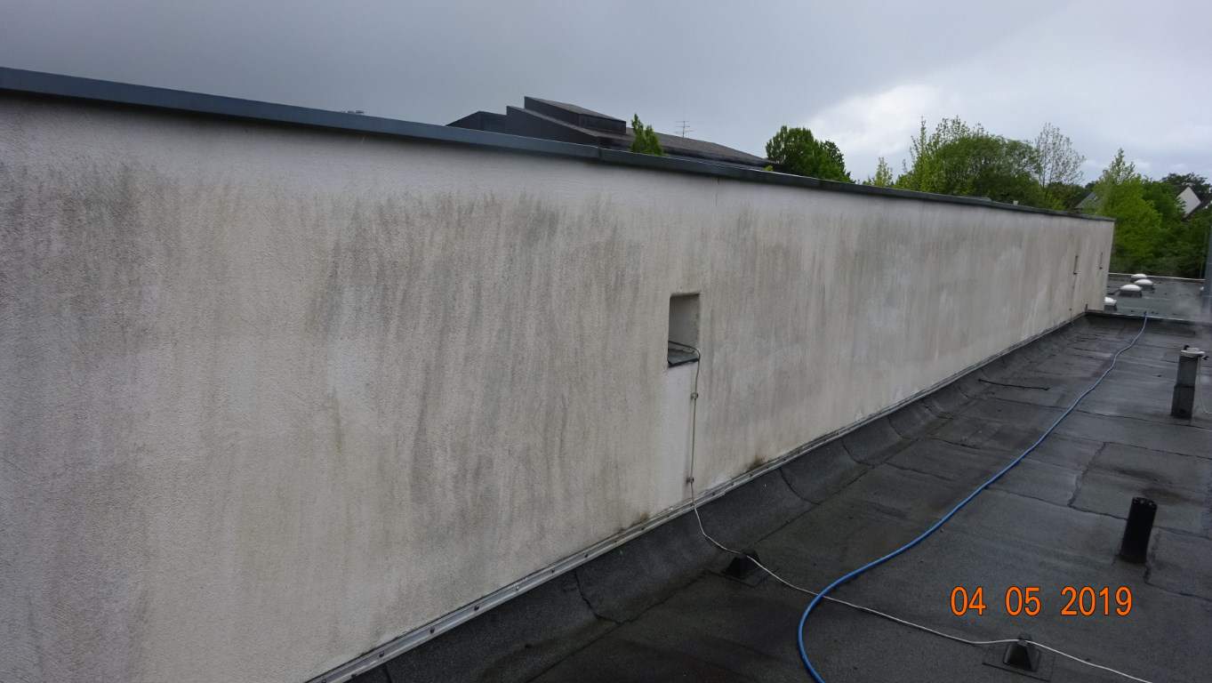 Selbst die beste Außenfarbe ist irgendwann einmal durch natürliche Bewitterung und Umwelteinflüsse verschmutzt. Zu dieser Verschmutzung trägt oftmals auch die freundliche und moderne helle Bauweise bei, die u.a. von geringen Dachüberständen und hellen Farben erzeugt wird. Das was in den ersten Jahren einen tollen Eindruck hinterlässt, ist leider in den späteren Jahren für Verschmutzungen sehr anfällig. Die übliche Verfahrensweise ist es dann häufig, ein Gebäude ein zurüsten und einfach einen neue Farbschicht aufzubringen. Mit dem Ergebnis, das Sie das gleiche Ergebnis wie früher, einfach ein paar Jahre später, exakt wieder so haben werden: Eine verschmutzte Fassade. Außerdem kommt hinzu, das jede Farbschicht, egal wie diffussionsoffen diese neue Farbe ist, immer ein wenig von der Atmungsfähigkeit Ihrer Fassade wegnimmt. Sie drücken Ihrer Fassade langsam die Luft ab…..Alle Berechnungen die vorher bei der Erstellung des Gebäudes in Bezug auf Wasserdampfdiffusionsfähigkeit erstellt wurden, führen Sie mit einer weiteren Farbschicht ad absurdum.