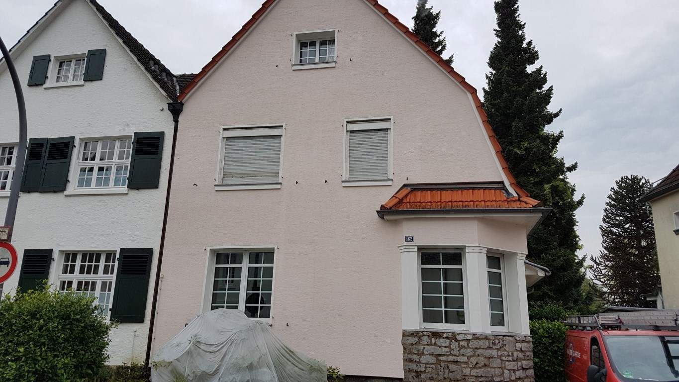 Ein Altbau um die Jahrhundertwende entstanden. Durch großen Baumbewuchs und Südseite über Jahrzehnte mit Algen und Vermoosungen besetzt. Ein Eierbewurf auf der Straßenseite trug zu dem mittlerweile sehr maroden Erscheinungsbild bei. Die Eigentümerin hatte bereits Angebote von Gerüstbaufirmen und Malerbetrieben eingeholt: Ein neues Outfit sollte her. Wir erfuhren noch rechtzeitig von dem Anliegen der Fassadenverschönerung und haben zunächst eine kostenlose Probereinigung von einer Musterfläche angeboten. Die Eigentümerin war so begeistert, das wir kurz darauf den Auftrag erhielten, die Fassade zu reinigen und mit einem biologischem Langzeitschutz zu versehen. Im Oktober 2017 war es soweit. Innerhalb von nur 2 Tagen haben wir die komplette Fassade gereinigt und mit einer biologischen Imprägnierung versehen. Das Gebäude erstrahlt nun von allen Seiten wie neu. Das Ganze hat nur einen Bruchteil des Klassikers Gerüstbau/ Malerbetrieb gekostet und vor Allem: Es ist wesentlich ökologischer und der Altbau kann weiterhin atmen. Denn wir haben nicht einfach eine weitere Schicht Farbe aufgebracht, die natürlich die Wasserdampfdiffusionsfähigkeit der Fassade stark einschränkt (Achtung: Erhöhte Gefahr der Schimmelbildung gerade bei Altbauten!) sondern die bereits vorhandene Farbe wieder aufbereitet. Im Sinne des Umweltgedanken die deutlich bessere Lösung. Wenn auch Sie eine verschmutzte Fassade haben, fordern Sie uns an. Gerne überzeugen wir Sie davon, das Sie viel Geld sparen können, Ihrer Fassade durch Reinigung statt durch einer weitere Farbschicht auch einen Gefallen erwiesen und Ihr Gebäude in neuem Glanz erstrahlen lassen. Umweltfreundlich – Preiswert – Kompetent.