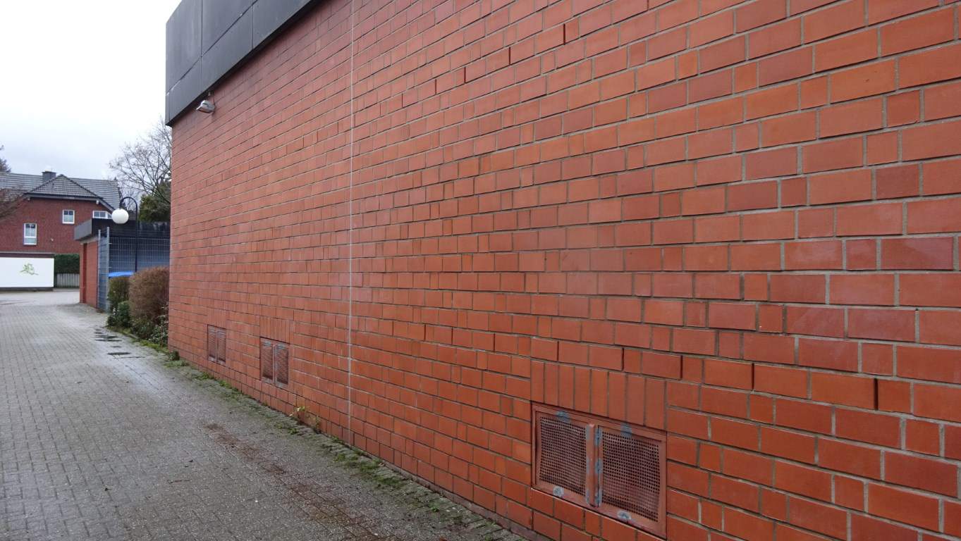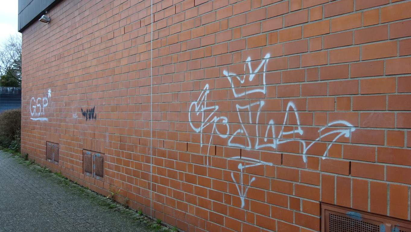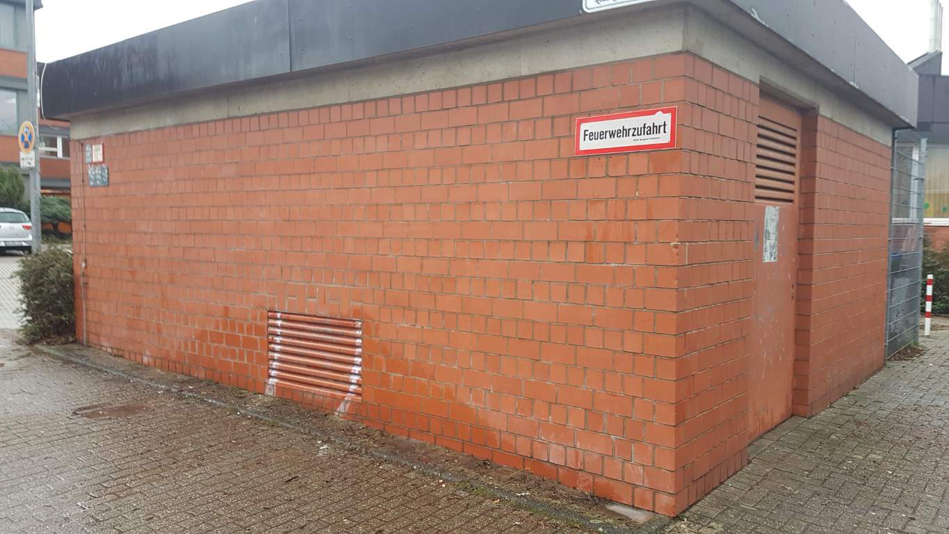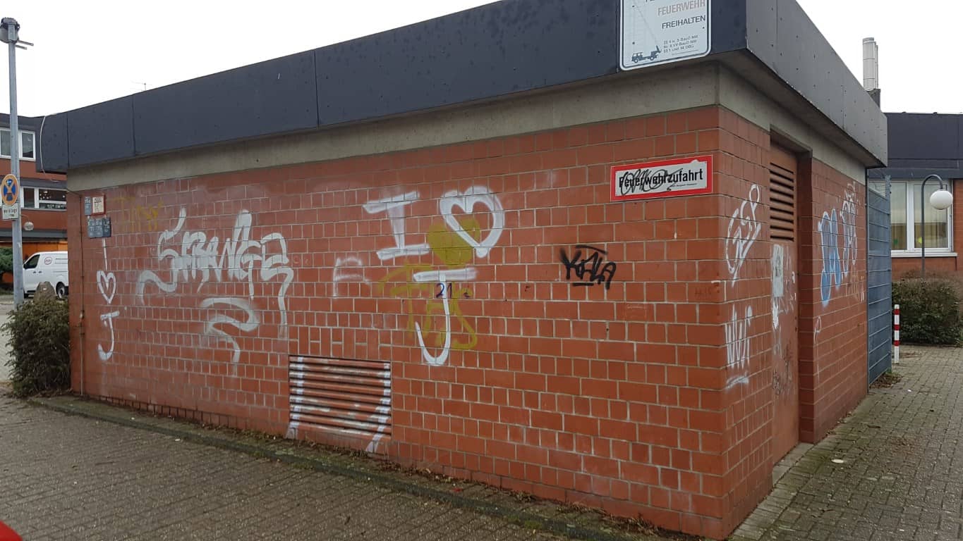 Es handelt sich um einen Klinkerbau (Schulzentrum) aus den Ende der achtziger Jahren. Die Graffitis befanden sich schon seit mehreren Jahren auf den Klinkersteinen. Das erschwert die Entfernung, denn durch langjährige UV-Bestrahlung und den ungeschützten Untergrund sind die Graffitis stark in den Stein eingezogen.