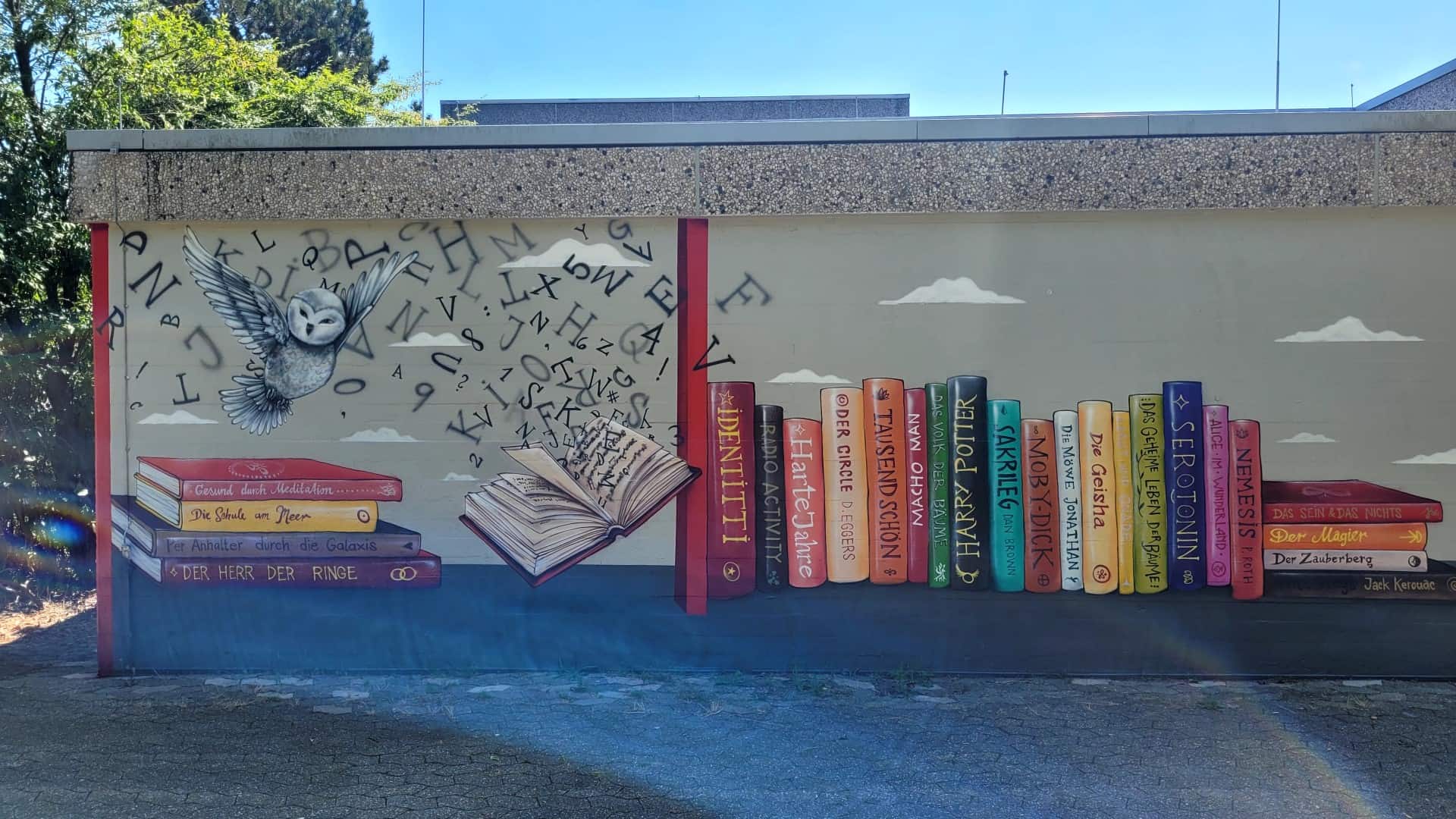 Mit unserem Auftragsgraffiti in der Stadtbibliothek Leverkusen haben wir nicht nur ein beeindruckendes Kunstwerk geschaffen, sondern auch einen effektiven 2K Graffitischutz appliziert, der die Fassade langfristig schützt. Dieser doppelschichtige Schutz sorgt dafür, dass zukünftige Graffitischmierereien spielend leicht entfernt werden können, ohne die darunterliegende Kunst zu beeinträchtigen. Darüber hinaus erhöht der Graffitischutz die Langlebigkeit der Wandgestaltung und bewahrt die Ästhetik des Raumes.