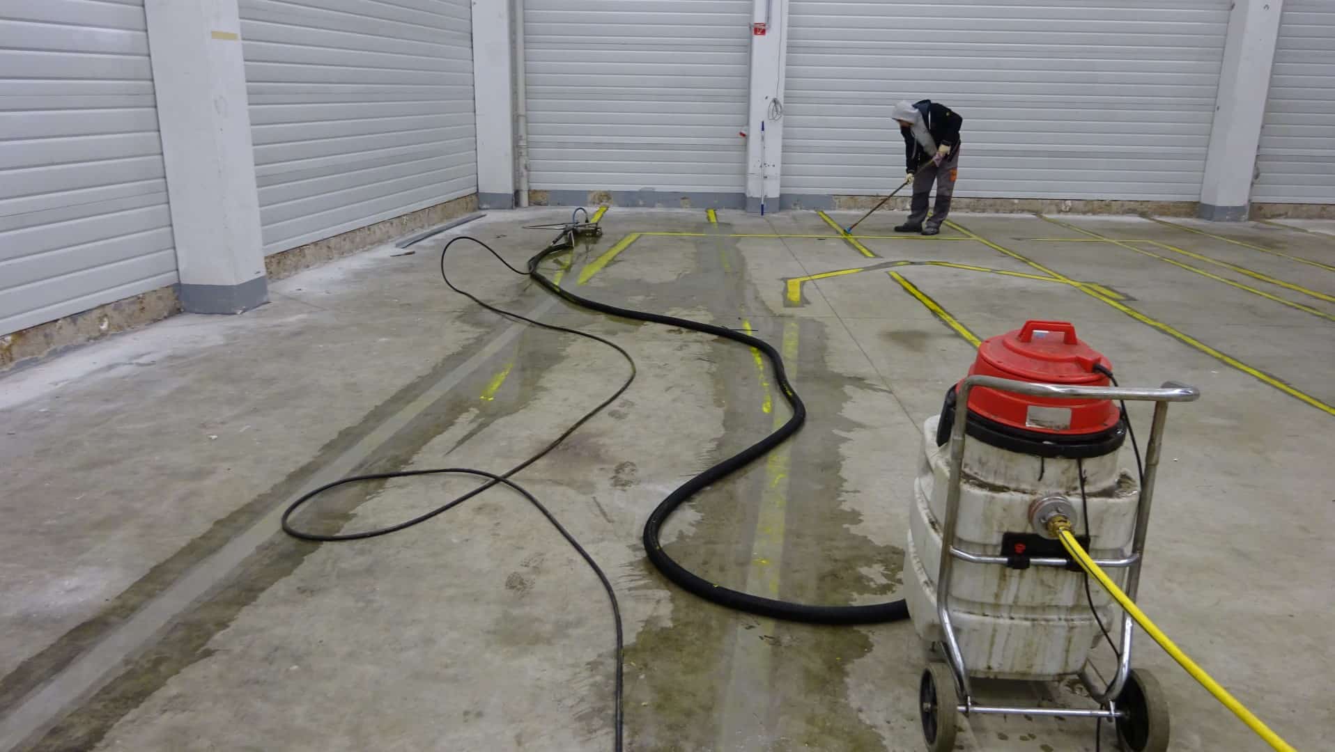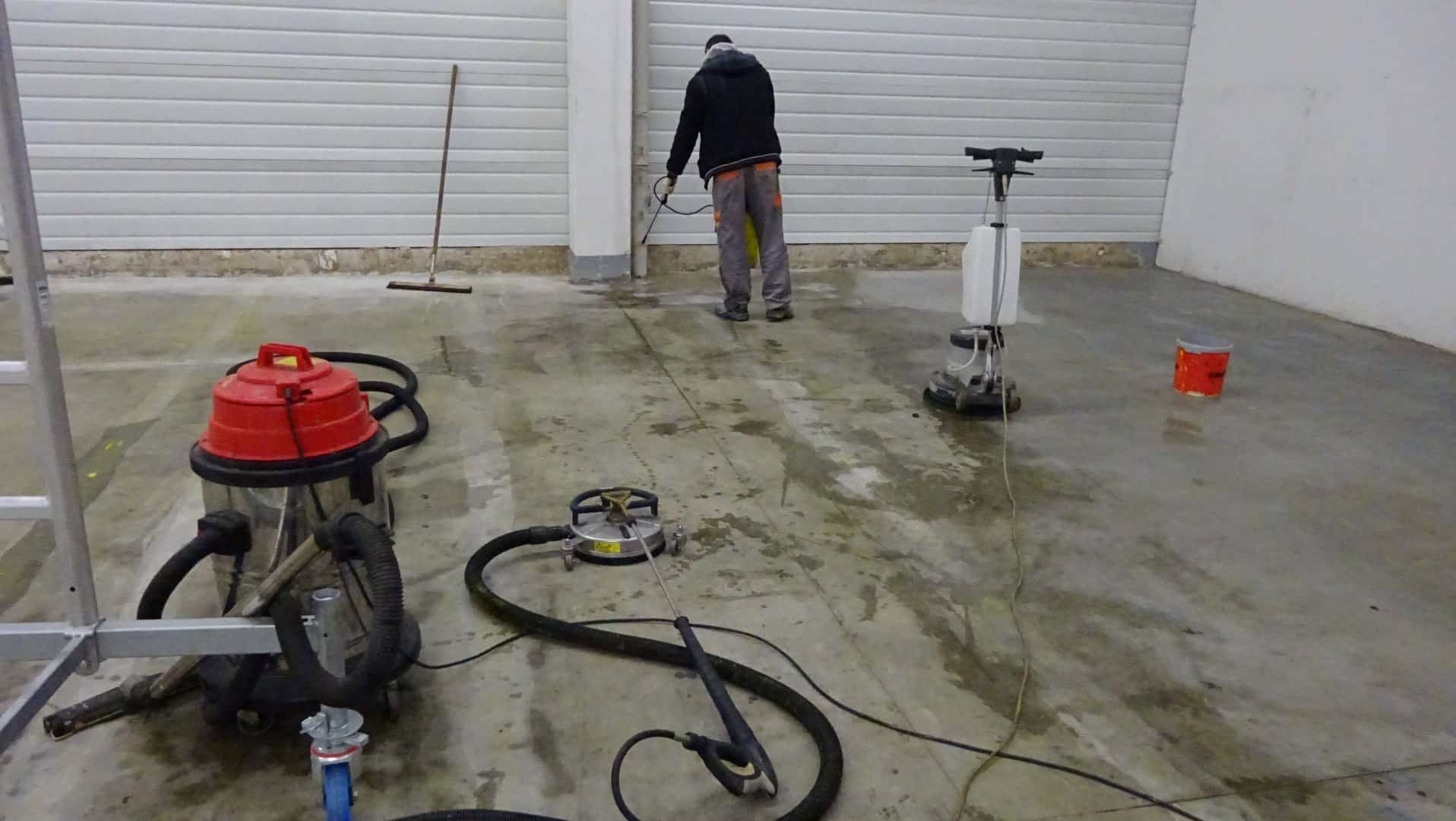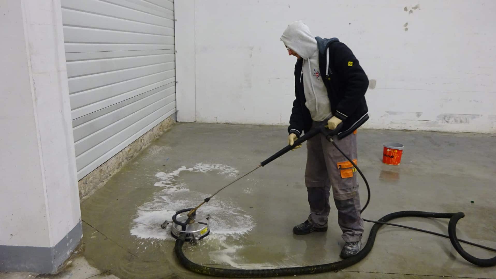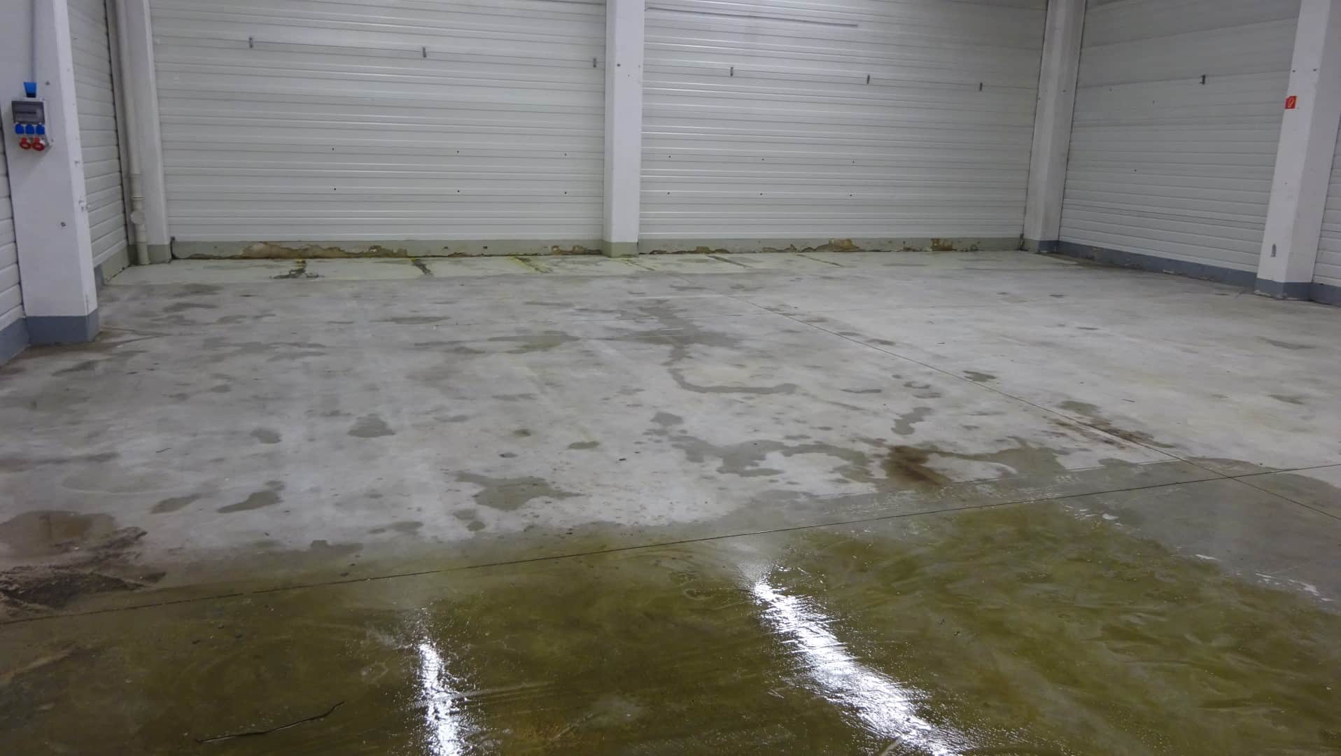 Um die Lagerhalle in Remscheid gründlich zu reinigen, haben wir unsere effektiven Reinigungsgeräte genutzt. Mit der Flächenreinigungshaube und dem Heißwasser-Hochdruckreiniger haben wir hartnäckige Rückstände entfernt und stark verschmutzte Böden wieder sauber gemacht. Danach haben wir eine spezielle Tiefenhydrophobierung aufgetragen und eine klare Bodenbeschichtung aufgebracht.