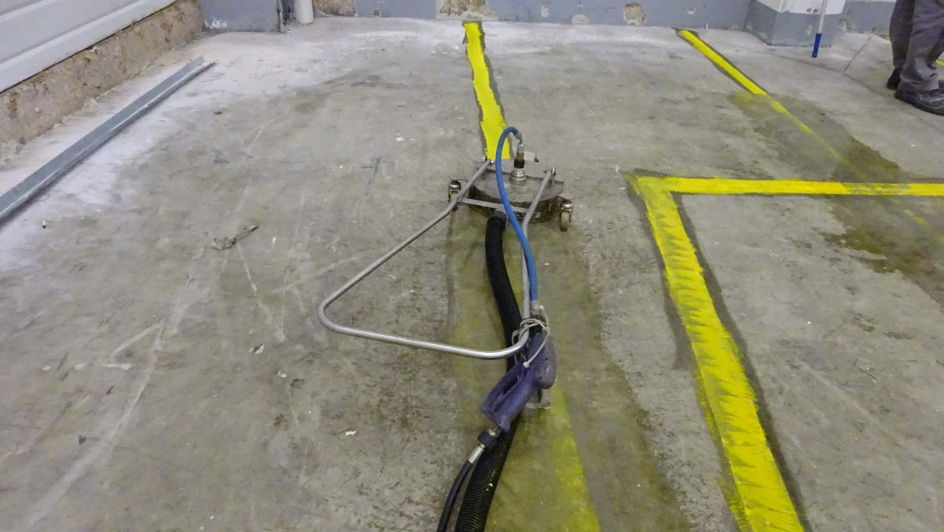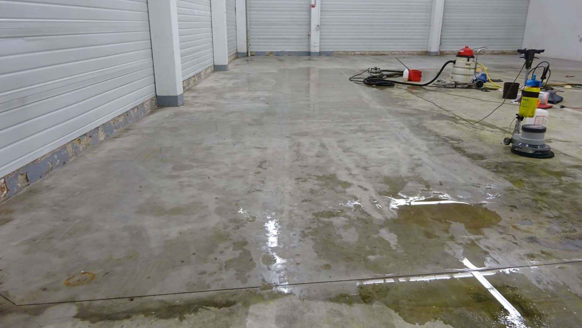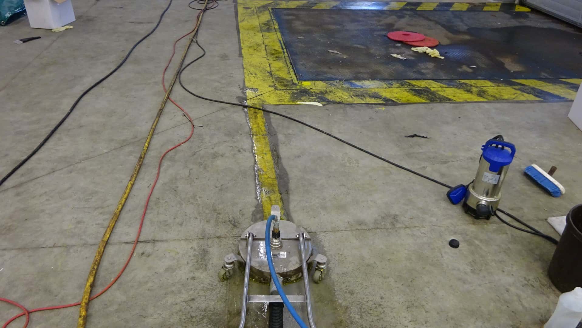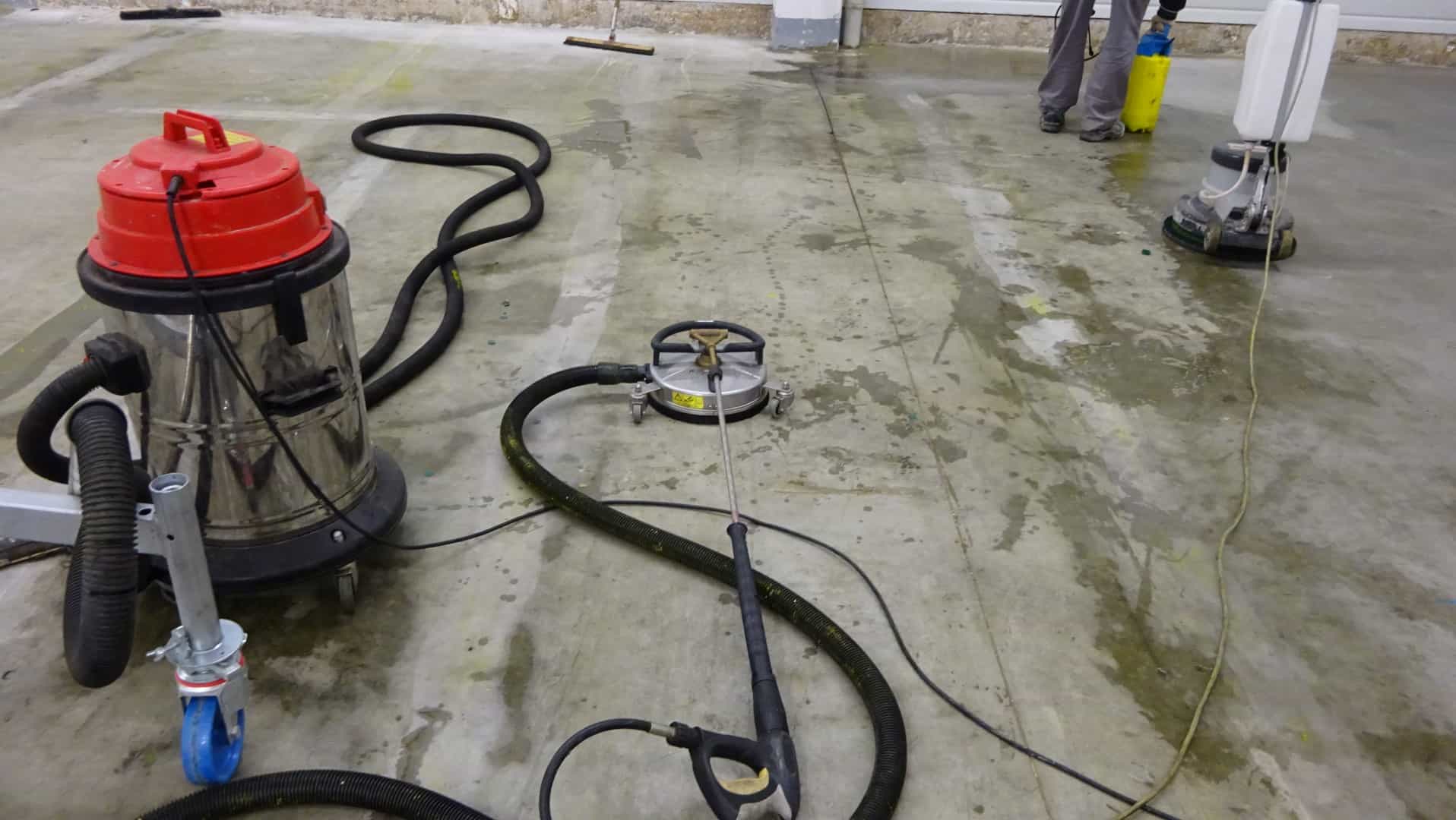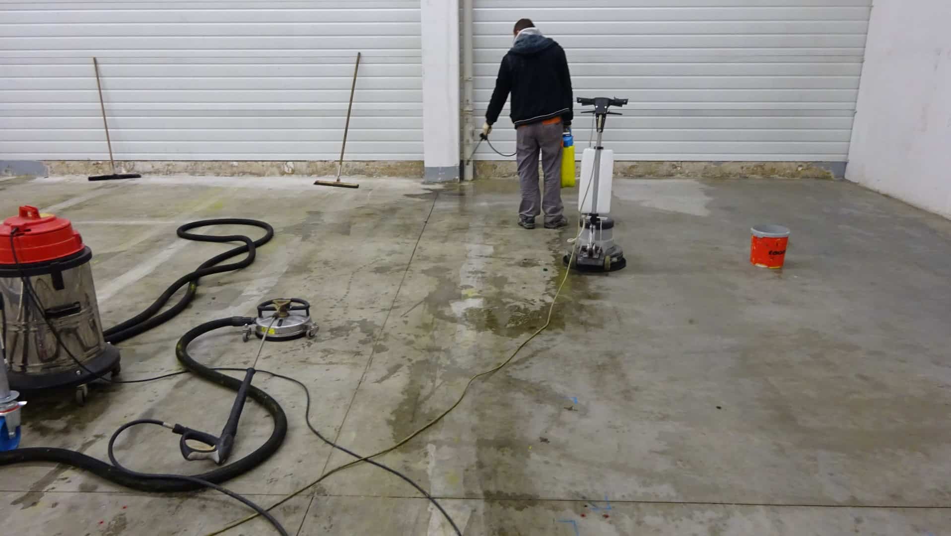 Um die Lagerhalle in Remscheid gründlich zu reinigen, haben wir unsere effektiven Reinigungsgeräte genutzt. Mit der Flächenreinigungshaube und dem Heißwasser-Hochdruckreiniger haben wir hartnäckige Rückstände entfernt und stark verschmutzte Böden wieder sauber gemacht. Danach haben wir eine spezielle Tiefenhydrophobierung aufgetragen und eine klare Bodenbeschichtung aufgebracht.