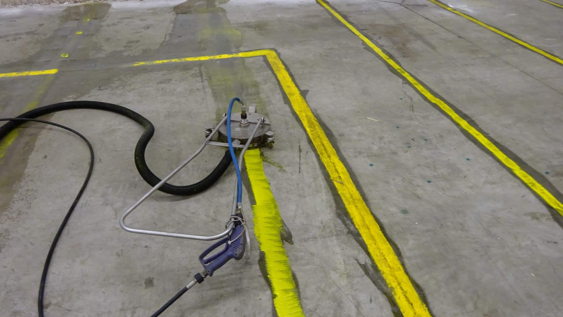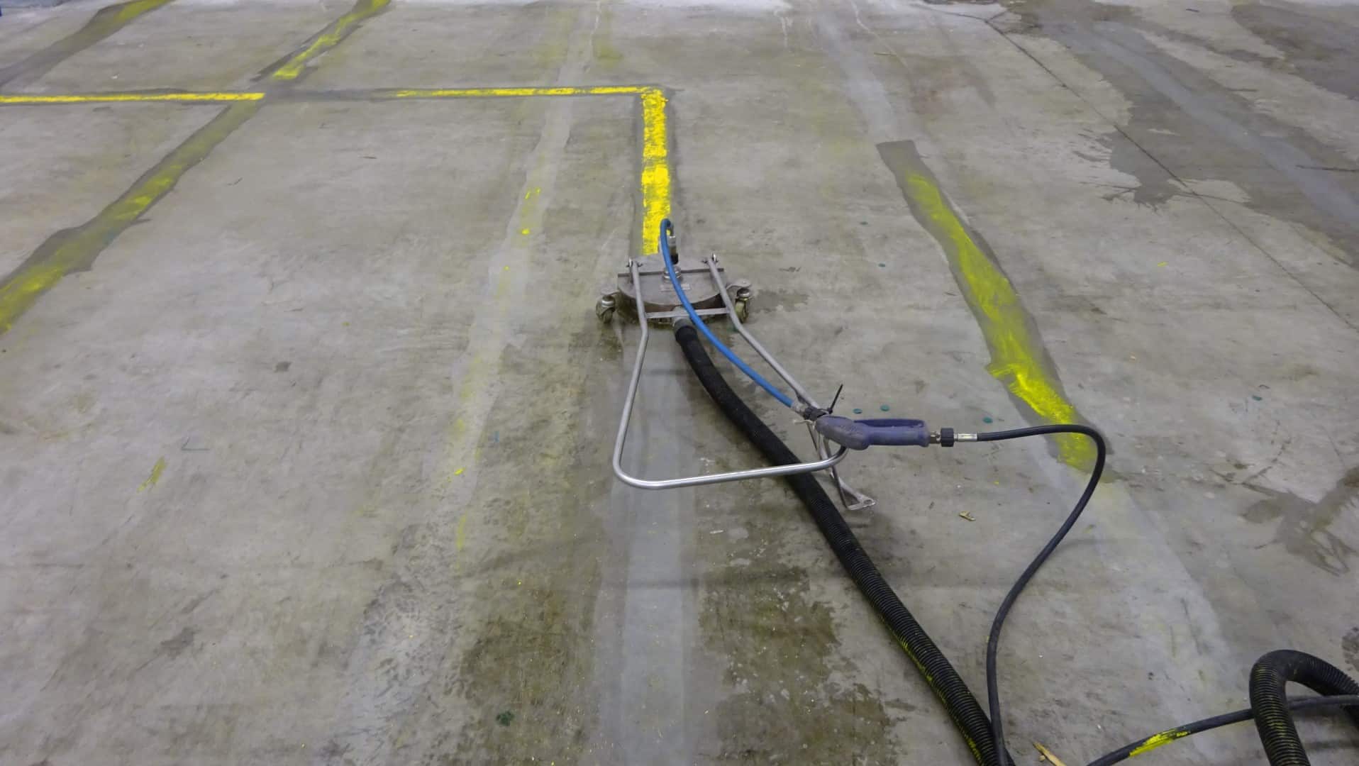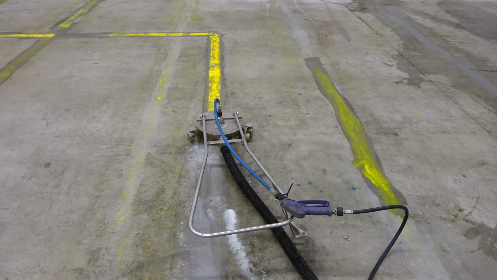 Lagerhalle in Remscheid – Öl, alte Farbe und Bodenmarkierung entfernen