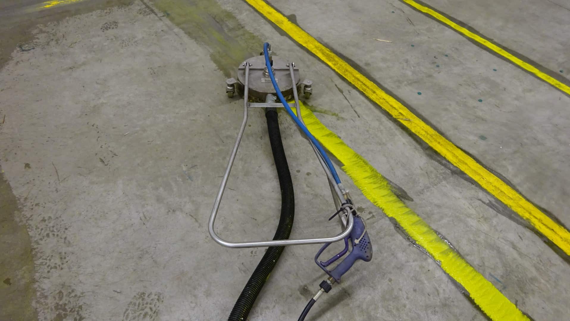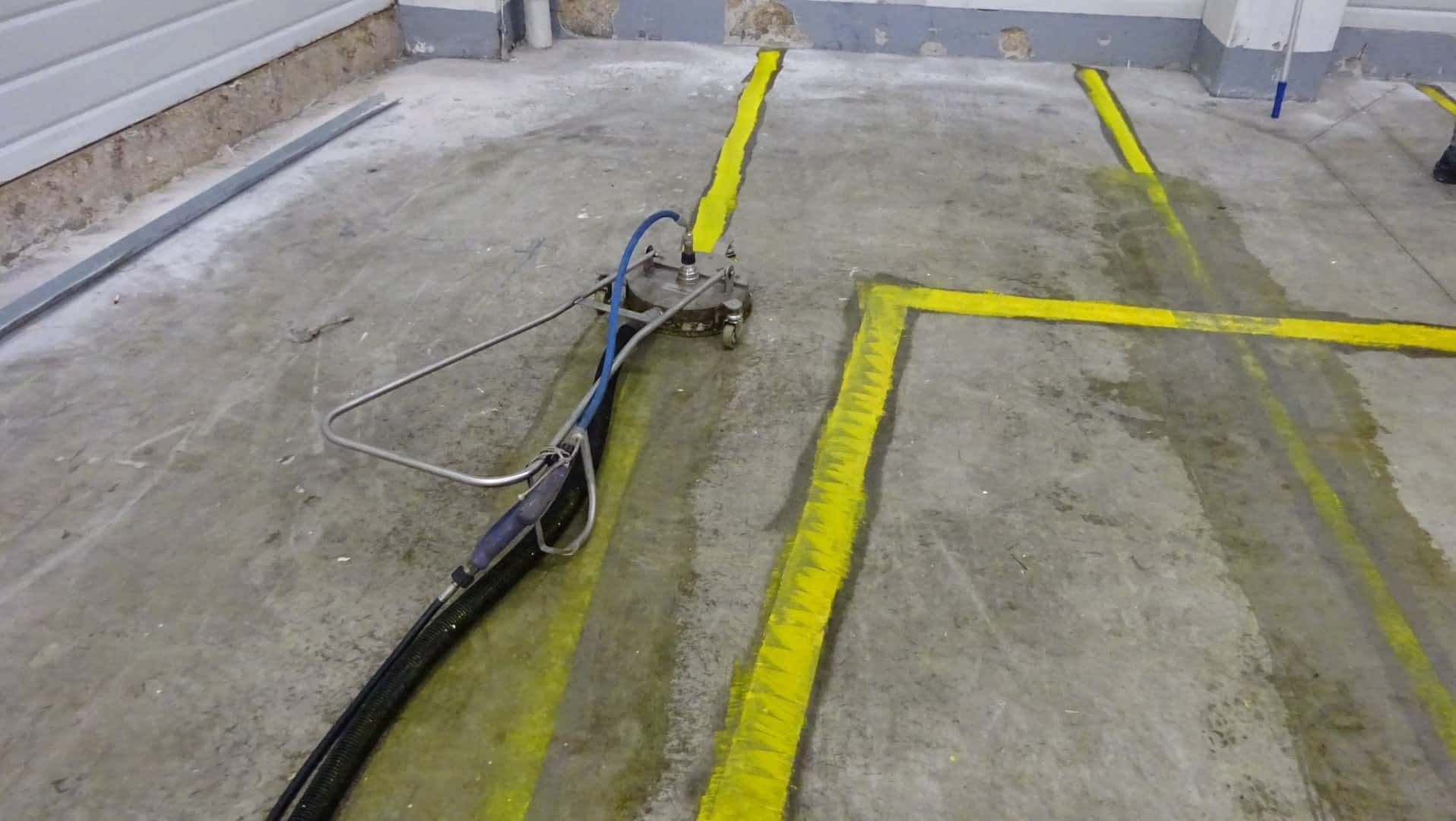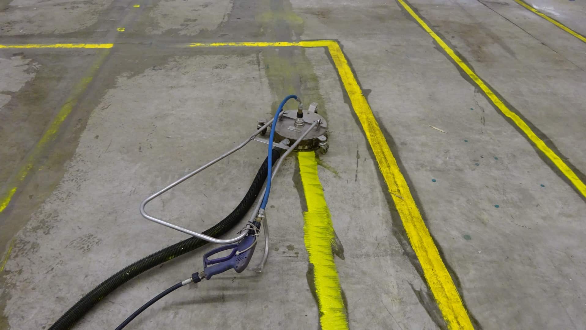 Lagerhalle in Remscheid – Öl, alte Farbe und Bodenmarkierung entfernen